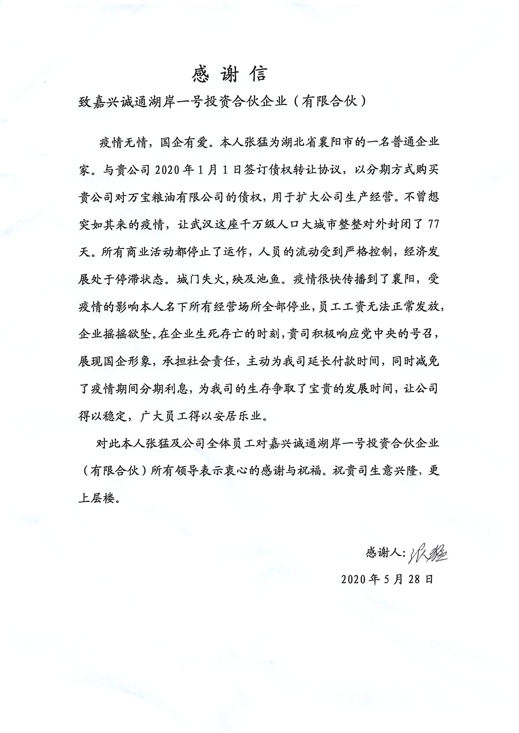 一封感謝信
